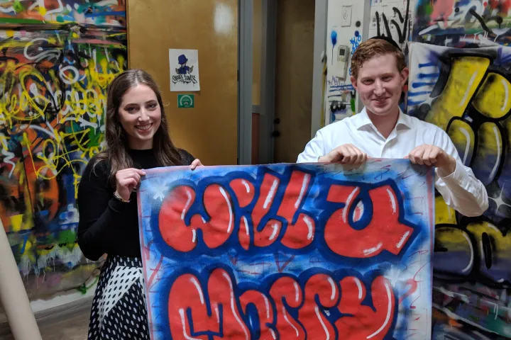 - For 250$ you create your graffiti on a large canvas and we give you sweatshirts to decorate or we provide you with individual canvases to create.